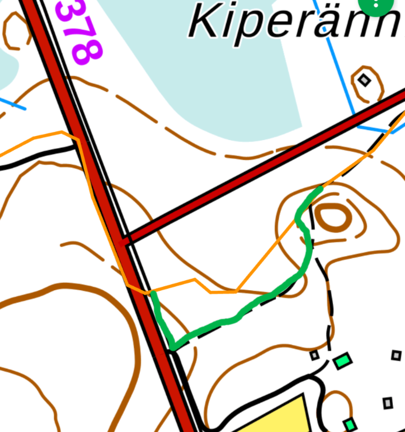 Taavetin tien ylityksen itäpuolella on uramuutos hakkuusta johtuen. Tie ylitetään vanhasta paikasta, ja ajetaan tien reunaa linjan alla etenään, kunnes metsäautotie haarautuu itään. Tätä ajetaan noin…